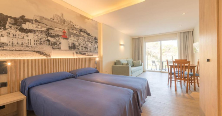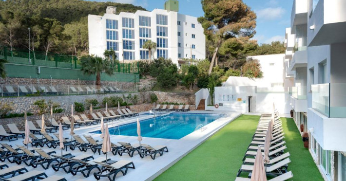 El Pinar este situat pe plaja linistită Cala Llonga, la 5 km de Santa Eulalia si la 10 km de orasul Ibiza.