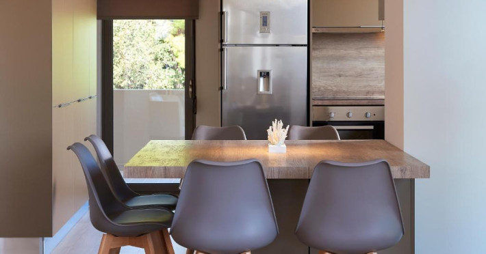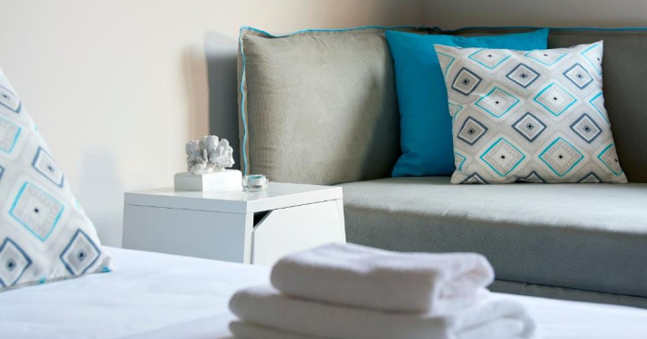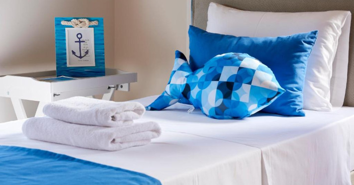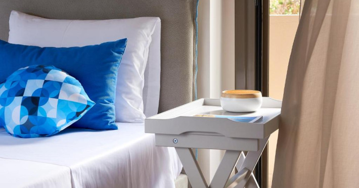 Toate unitățile sunt dotate cu aer condiționat și includ o zonă de luat masa și o zonă de relaxare cu TV cu ecran plat. Unele unități au terasă și/sau balcon cu vedere la mare sau la piscină. Există, de asemenea, o bucătărie complet utilată, dotată cu mașină de spălat vase. De asemenea, există cuptor, frigider și plită, precum și aparat de cafea. Fiecare unitate are o baie privată cu duș sau cadă. Se oferă prosoape și lenjerie de pat. Este prevăzut un sistem de alarmă.