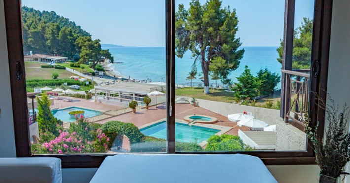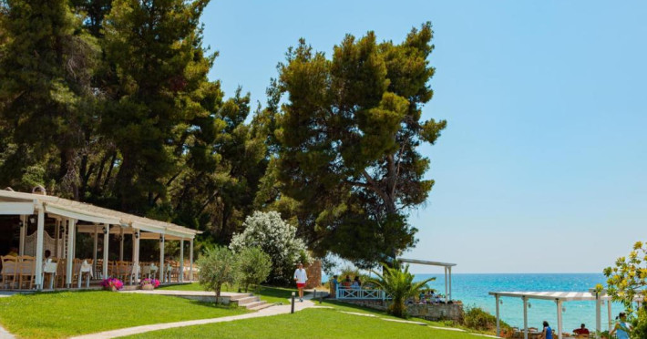 Având o locaţie idilică în golful Elani, acoperit de pini, acest complex de 4 stele de pe malul mării pune la dispoziție 2 piscine, un restaurant cu vedere la mare şi un bar pe plajă. Toate camerele au aer condiționat, iar oaspeții beneficiază gratuit de acces la internet Wi-Fi și parcare