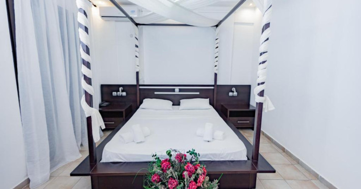 Three outdoors pools (a children pool) and an indoor’s heated one offer freshness, relaxation and safety (lifeguard’s presence) whilst the wonderful sandy beach and most clean sea invite you for a plunge into the sea. The hotel offers also mini-market, internet corner, free wi-fi internet services, restaurant, beach bar, tavern and also tennis and basketball courts. Meals can be of different choices, depending on the guests number (might be buffet or a-la-carte or set menu). The sunbeds on the beach are free of charge for the clients of the hotel.Localizare