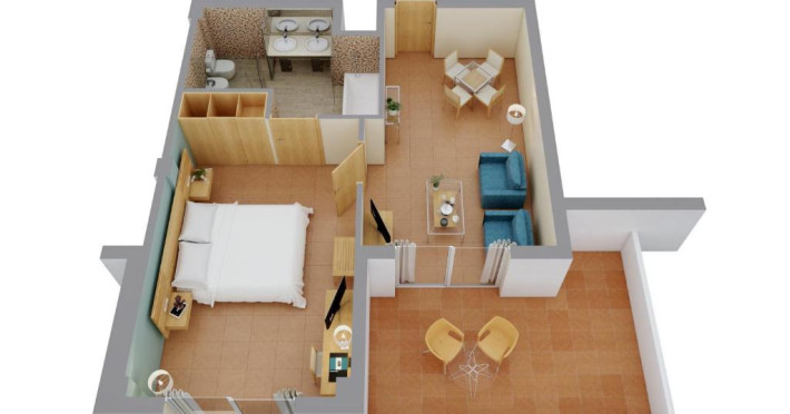 Camerele de la Elba Carlota sunt spatioase si luminoase. Toate camerele au aer conditionat, minibar si TV prin satelit.
