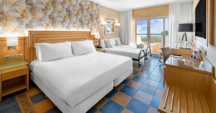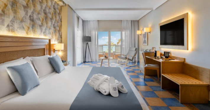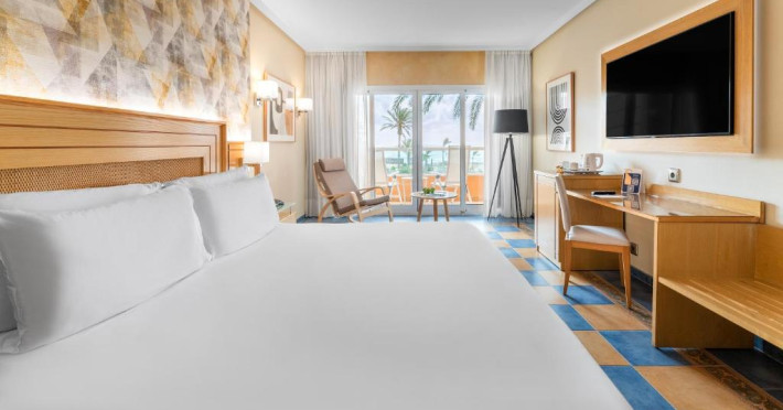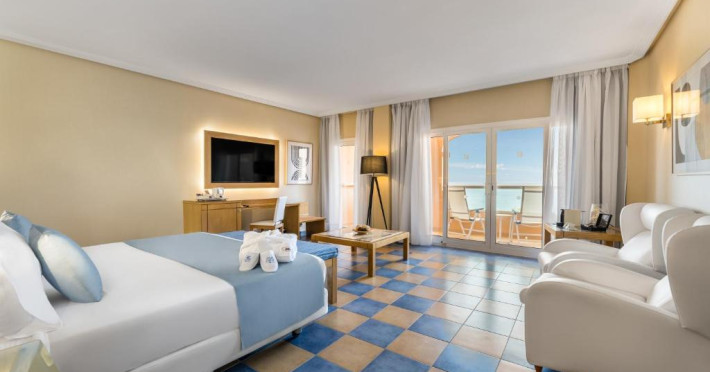 Toate camerele hotelului Elba Sara Beach & Golf sunt bune cu aer condiționat și balcon privat, iar cele mai multe oferă vedere superbă la ocean. Camerele au minibar, TV și baie privată.