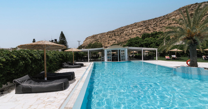 The 60 rooms of accommodation view to the multicolored garden of the property, between the Cretan land and the imposing mountains around, offering unique tranquility to the visitor. Elea Terra Hotel offers accommodation with a seasonal outdoor swimming pool, free private parking, a garden and a shared lounge. With free WiFi, this 3-star hotel offers a 24-hour front desk and a concierge service. The hotel has a terrace and garden views, and guests can enjoy a meal at the restaurant or a drink at the bar. The center of Matala can be reached within 10 minutes' walk of the hotel.