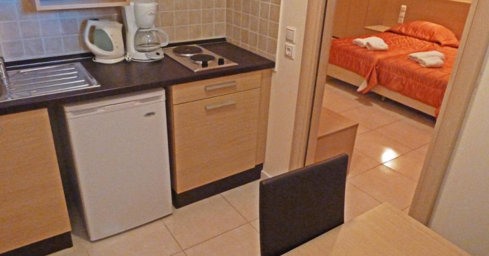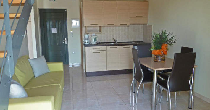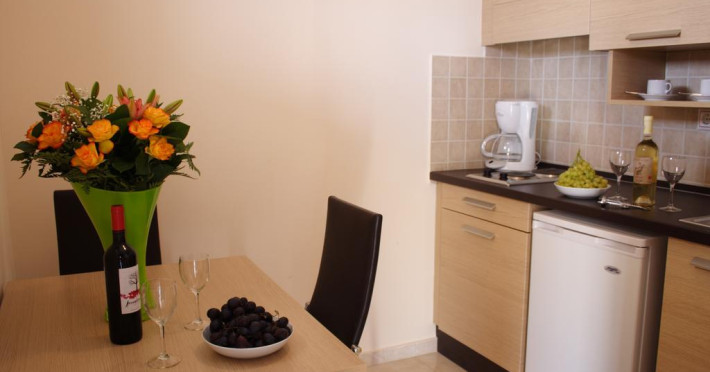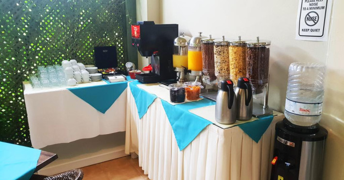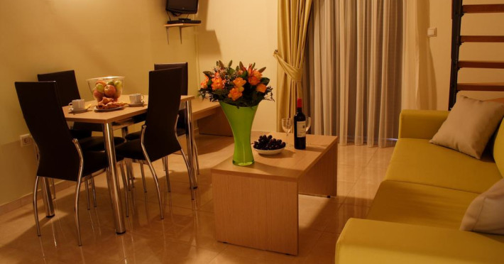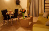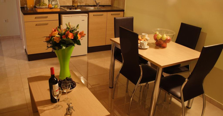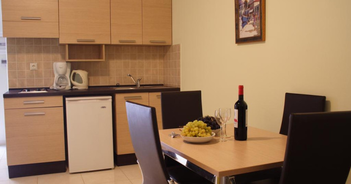 La proprietate există un snack-bar care oferă cafea, băuturi și gustări. Masa poate fi servită atât în interior, cît si în aer liber, pe terasă, în funcție de vreme. Oaspeţii îşi pot pregăti micul dejun şi alte mese şi le pot savura chiar pe balcon.