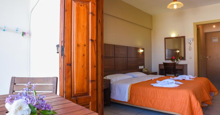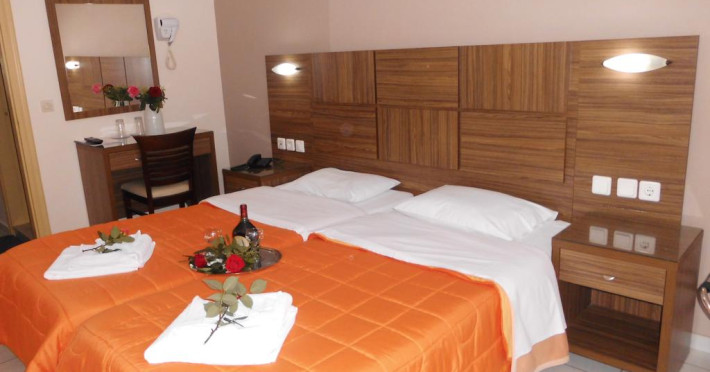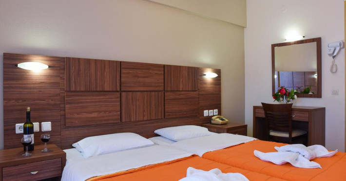 Oaspeții au la dispoziție serviciul de room service pentru a servi masa sau diverse băuturi. Camerele confortabile de la Eleana Hotel sunt dotate cu pardoseală de gresie/ marmură, aer condiționat și Tv. În camere există baie cu cadă sau duș ce are în dotare foehn și articole de toaletă gratuite. Unele camere au balcon cu vedere la mare sau la grădină. Oaspeții au acces gratuit la serviciul Wi-fi în camere. Curățenia in cameră se face zilnic. Fiecare unitate de cazare are frigider.