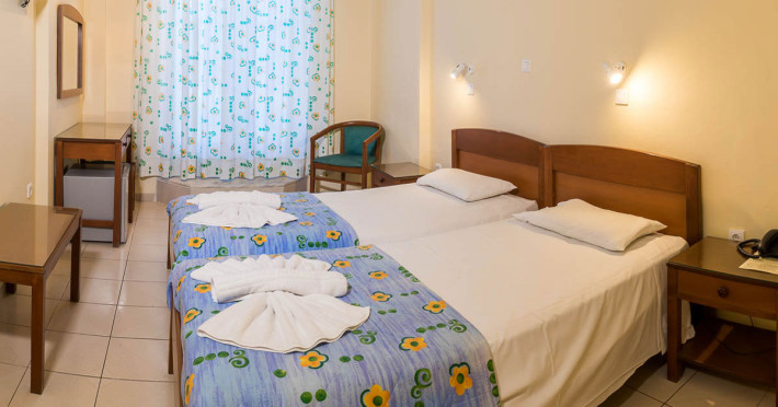- Hotel Eleana are camerele dotate cu: aer conditionat (contra cost: 8 eur/zi – platibil la fata locului), frigider, seif (contra cost: 3 eur/zi – platibil la fata locului), TV, baie cu dus, balcon, lenjeriile de pat si prosoapele sunt schimbate de 2 ori pe saptamana.