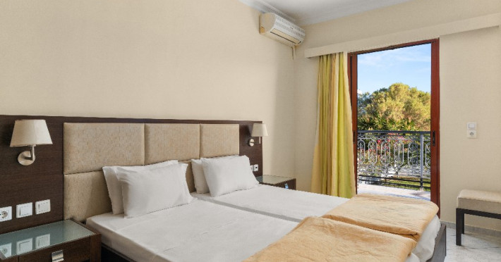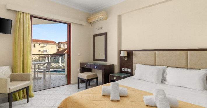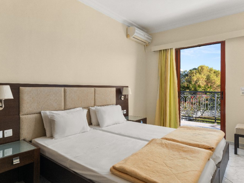 Localizare: Hotelul Eleana este un complex modern situat in statiunea Argassi din insula Zakynthos. Hotelul este ideal atat pentru familii cat si pentru cupluri.Facilitati camere: hotelul detine 44 de camera decorate simplu dar confortabile. Fiecare camera este dotata cu balcon sau terasa privata, tv LCD, baie proprie cu dus, uscator de par, frigider.
