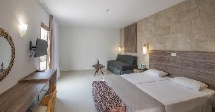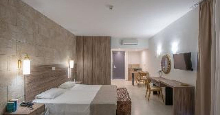 The village is situated on the seafront in a magnificent area, just 1.5 km from the centre of Ayia Napa and close to many restaurants, bars and shops. There is a water park just 2 km from the beach hotel and Larnaca Airport is approximately 35 km away. The hotel's Okeanos restaurant is offering all-day dining and a wide variety of local and international specialities with an extended choice of local wines. Facilities available to guests in the air-conditioned beach hotel include a TV lounge, children's playground and a bar. All rooms have an open-plan lounge with kitchenette, an en suite bathroom and a private balcony or terrace. The hotel features a large outdoor swimming pool with children's paddling area, and a heated indoor pool. Guests may also work out in the gym, relax with a massage or in the sauna, or take advantage of the tennis facilities. The nearby beach is sandy.The village is situated on the seafront in a magnificent area, just 1.5 km from the centre of Ayia Napa and close to many restaurants, bars and shops. There is a water park just 2 km from the beach hotel and Larnaca Airport is approximately 35 km away. The hotel's Okeanos restaurant is offering all-day dining and a wide variety of local and international specialities with an extended choice of local wines. Facilities available to guests in the air-conditioned beach hotel include a TV lounge, children's playground and a bar. All rooms have an open-plan lounge with kitchenette, an en suite bathroom and a private balcony or terrace. The hotel features a large outdoor swimming pool with children's paddling area, and a heated indoor pool. Guests may also work out in the gym, relax with a massage or in the sauna, or take advantage of the tennis facilities. The nearby beach is sandy.
