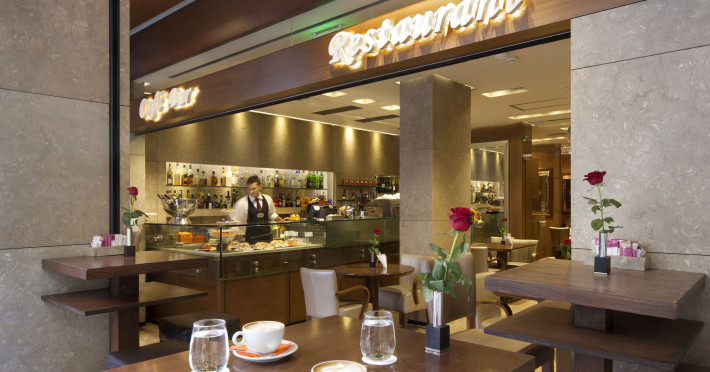Există diverse locuri unde se poate lua masa: un restaurant pentru nefumători, o sală de mese, o cafenea și un bar. Hotelul oferă pentru masă pachete de servicii cu mic dejun inclus și demipensiune. Un bufet bogat la micul dejun, prânz și cină sunt delicioase și pregătite foarte diversificat. Sunt disponibile și mâncăruri speciale, printre care feluri de mâncare vegetariene. De asemenea, unitatea de cazare pune la dispoziție gustări.