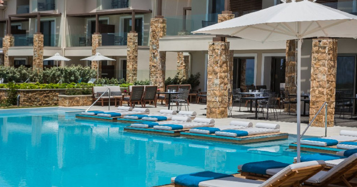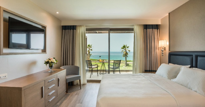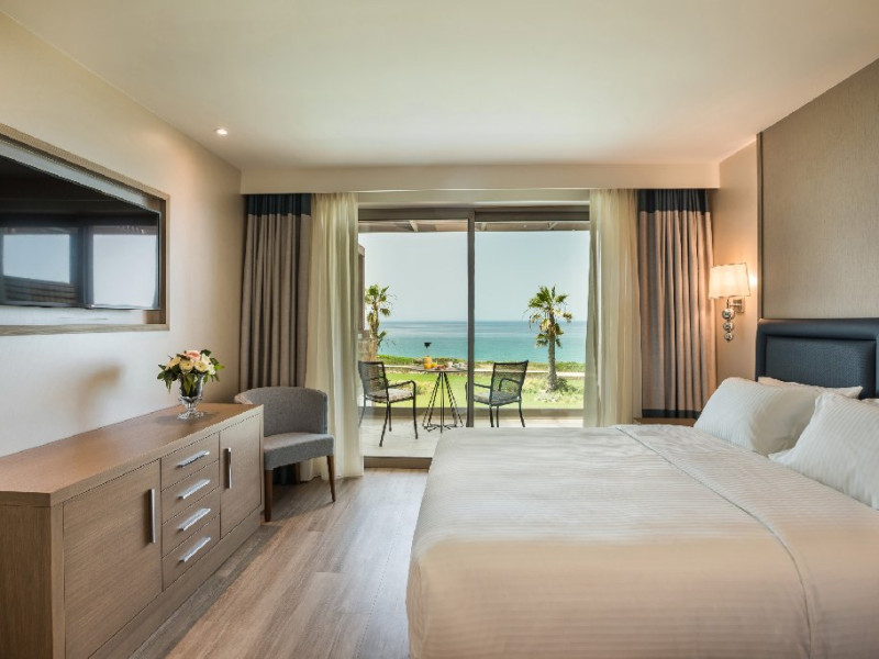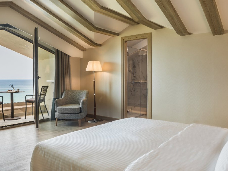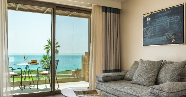 Hotelul ofera camere si suite moderne, inclusiv camere duble cu vedere la mare, camere tip maisonette si suite premium, unele dintre ele cu piscina privata. Unitatile sunt dotate cu aer conditionat, Wi-Fi gratuit, TV cu ecran plat si canale prin satelit, minibar, seif, facilitati pentru prepararea cafelei sau ceaiului si baie privata cu uscator de par si articole de toaleta. Majoritatea camerelor dispun de balcon sau terasa cu vedere catre mare sau imprejurimi.