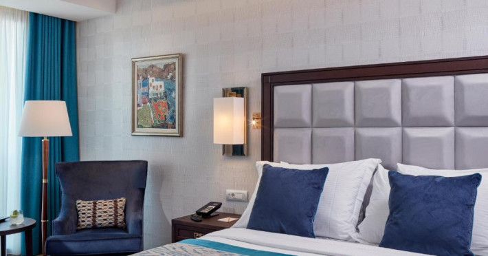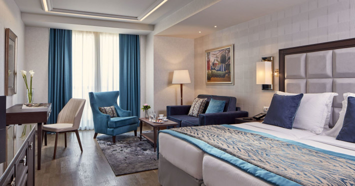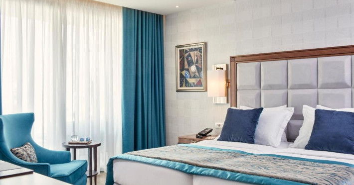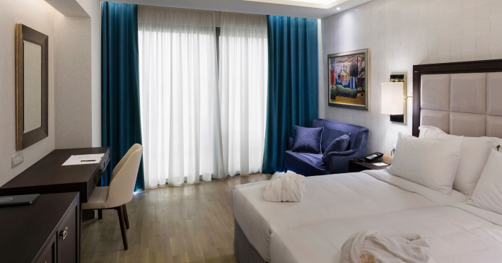 În camere există o bucătărie și o baie; aparatul de aer condiționat creează o atmosferă plăcută. Dotările standard din majoritatea camerelor includ un balcon. Camerele au un pat dublu sau o canapea. În plus, pentru cei mici sunt disponibile paturi pentru copii. În plus sunt disponibile un minibar și un birou și, contra unui supliment de preț, un seif. Echiparea de bază cuprinde de asemenea și un aparat pentru cafea/ceai. Clienții au parte de mai mult confort și datorită setului de călcat. În plus, există un telefon, un televizor cu ecran plat cu canale prin satelit și WiFi (gratuit). În cameră se găsesc și papuci de casă. Băile sunt dotate cu un duș, o cadă și o cadă cu hidromasaj. Un uscător de păr și halate de baie stau la dispoziție pentru folosința zilnică. Articolele de cosmetică creează un confort deosebit în băi. Mai stau la dispoziție și camere adaptate pentru scaun cu rotile, cu baie fără bariere.