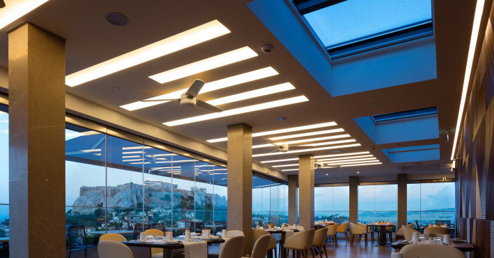 Zona cu restaurante dispune de 2 restaurante și de o cafenea. La centrul de cazare se oferă spre rezervare demipensiune. Zilnic sunt servite un mic dejun și o cină.