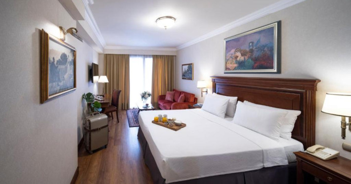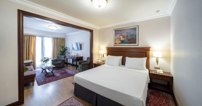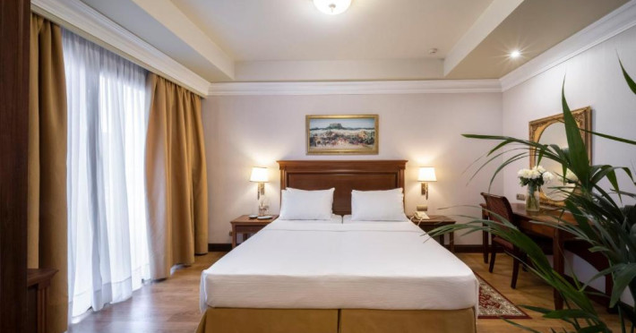 Cele 9 Suite Junior, cele 10 suite, cele 16 camere single și cele 115 camere duble sunt împărțite pe 7 etaje la ele se poate ajunge cu un lift. Recepția este deschisă la orice oră. O cameră de bagaje, un seif și un schimb valutar se numără printre facilitățile hotelului. În spațiile comune este disponibil WiFi (gratuit). La serviciul de organizare a excursiilor se dă o mână de ajutor la planificarea excursiilor. Locul de cazare dispune de facilități pentru persoanele în scaun cu rotile. Pe lângă un supermarket, aici se mai găsesc și alte magazine. O grădină oferă mai mult spațiu pentru relaxare și odihnă în aer liber. Printre celelalte facilități ale unității de cazare se numără un spațiu cu televizor și o bibliotecă. În cazul în care călătoresc cu mașina, clienții pot să parcheze într-un garaj (contra cost) sau în parcare. Printre alte servicii se găsesc un serviciu de îngrijire a bebelușilor, room-service, un serviciu de spălătorie, un coafor, o spălătorie de tip self-service și serviciile unui valet. Ziarul cotidian este gratuit pentru clienți. Cei ce doresc să lucreze pot apela la serviciile de secretariat.