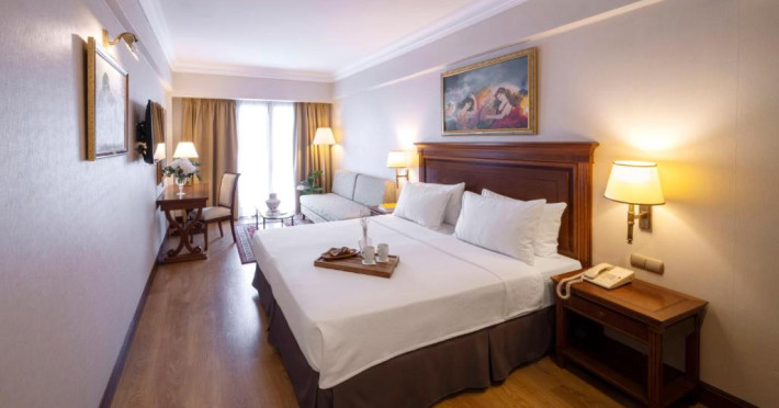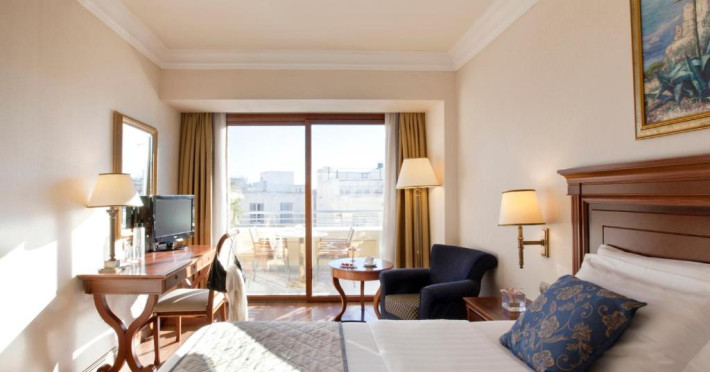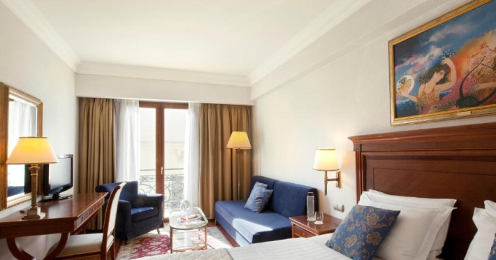 În camere există un aparat de aer condiționat și un sistem de încălzire. În majoritatea camerelor se găsește un balcon. Camerele cu mochetă dispun de un pat dublu. În plus, pentru cei mici sunt disponibile paturi pentru copii. De asemenea, sunt disponibile un seif, un minibar și un birou. Echiparea de bază cuprinde de asemenea și un aparat pentru cafea/ceai. Clienții au parte de mai mult confort și datorită setului de călcat. În plus, există un telefon cu apelare directă, un televizor cu canale prin satelit/cablu TV, un radio și WiFi (gratuit). În plus, clienții pot să apeleze la serviciul de pregătire a camerei pentru somn. În cameră se găsesc și papuci de casă. Băile sunt dotate cu un duș, o cadă și o cadă cu hidromasaj. Un uscător de păr și halate de baie stau la dispoziție pentru folosința zilnică. Articolele de cosmetică creează un confort deosebit în băi. Se oferă spre rezervare camere adaptate pentru scaun cu rotile. Hotelul oferă camere de nefumători și camere pentru fumători.