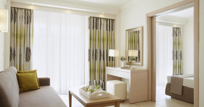 În camere există baie cu cadă sau duș ce are în dotare foehn și articole de toaletă gratuite. Fiecare cameră dispune de minibar și cană-fierbător. Oaspeții pot solicita serviciul de room service pentru a servi masa sau diverse băuturi. Camerele confortabile de la Electra Palace au pardoseală de gresie/ marmură, aer condiționat, Tv cu canale prin satelit și seif. Unele camere au balcon cu vedere la mare sau la piscină. Oaspeții au acces gratuit la serviciul Wi-fi în camere. Curățenia in cameră se face zilnic. Toate camerele spațioase de la Electra Palace au zonă de relaxare cu canapea, ceea ce oferă un plus de confort. Proprietatea oferă camere pentru familie cu o suprafață mai mare și un număr mai mare de paturi față de cele standard. Se pot rezerva de asemenea camere pentru nefumători.