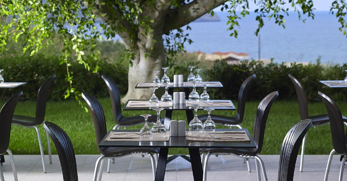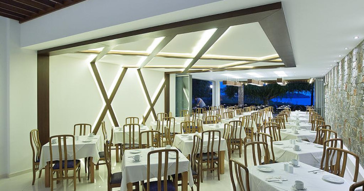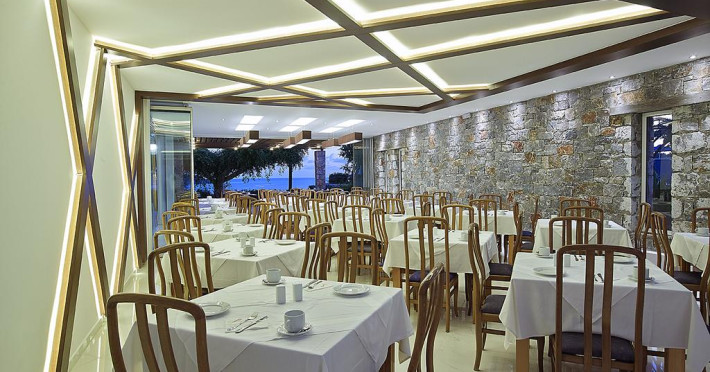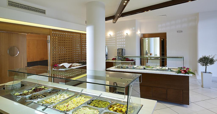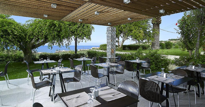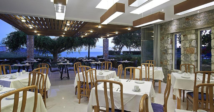 La Eleftheria oaspeții au la dispoziție un restaurant care servește mâncare în stil bufet. Masa poate fi servită atât în interior, cît si în aer liber, pe terasă, în funcție de vreme. În cadrul proprietății există și un snack bar care servește băuturi și gustări.