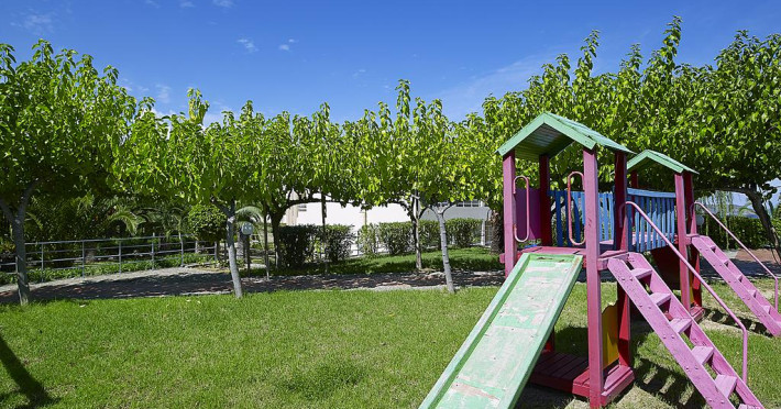 În grădina de la Eleftheria există un loc de joacă pentru copii special amenajat.