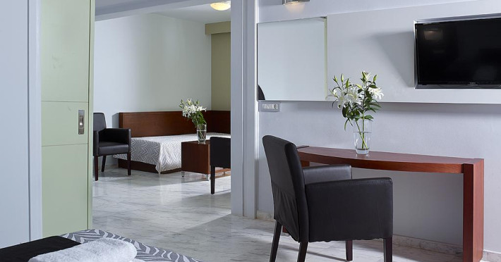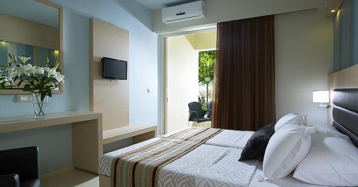 Sunt disponibile 66 camere. În camere există baie cu cadă sau duș prevăzută cu foehn. Unele camere au balcon cu vedere la mare sau la grădină. Camerele de la Eleftheria sunt dotate cu aer condiționat, Tv cu canale prin satelit și seif. Proprietatea oferă camere pentru familie cu o suprafață mai mare și un număr mai mare de paturi față de cele standard.