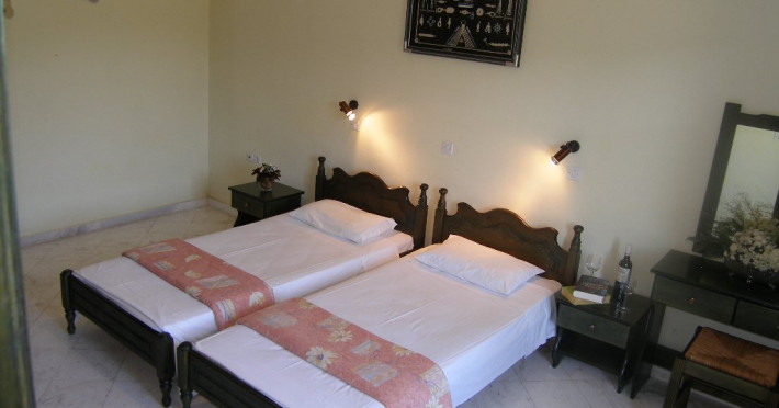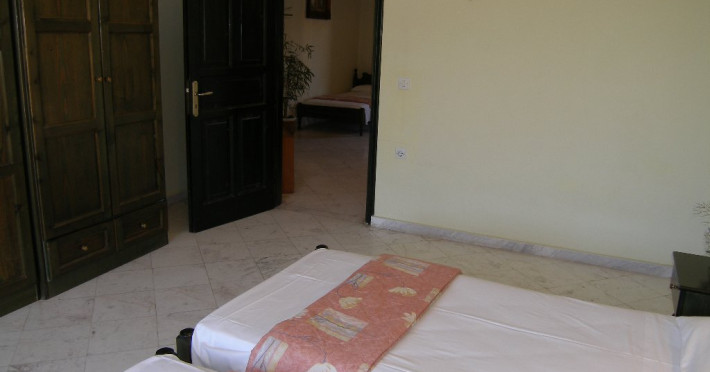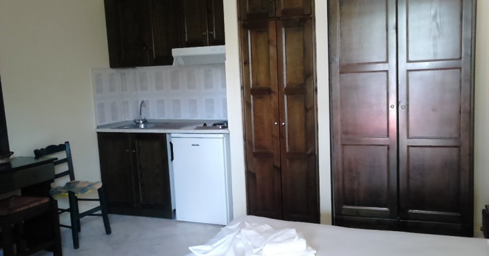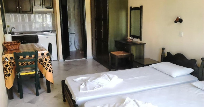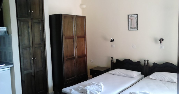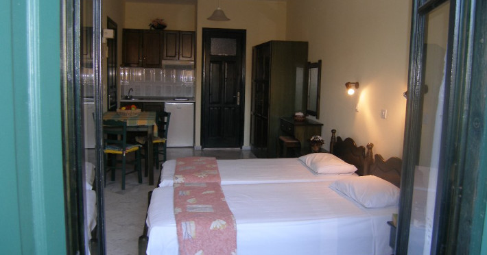 Apartamentele sunt alcatuite dintr-o camera spatioasa. Fiecare aparatament are un pat dublu si un pat twin sau trei paturi twin din lemn de nuc, dulapuri, birou si o chicineta echipata cu plita, chiuveta si frigider. Pe balcon se afla o masa si doua scaune din plastic.