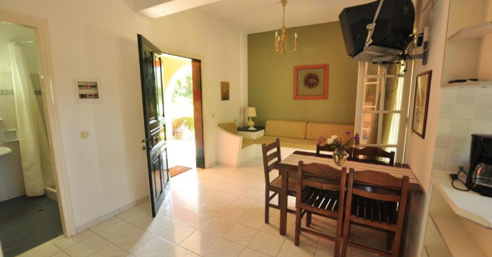 ELENA APARTMENTS CORFU - 3*Elena Apartments Corfu enjoys a quiet spot near the center of Acharavi, just 350 m from the nearest beach and approximately 38 km from Corfus airport. Designed in typical Corfiot architecture, this is a small apartment complex featuring spacious self-catering apartments, all fully furnished with a kitchenette and a dining area. An all-day pool bar and a swimming pool with complimentary sunbeds and umbrellas are also provided at a nearby sister hotel for the guests relaxation.