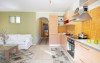 Bucatarie complet utilata: cuptor, masina de spalat vase, cuptor cu microunde, fierbator, masina de spalat haine.