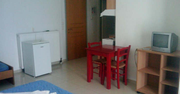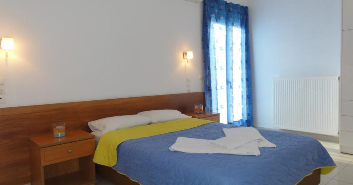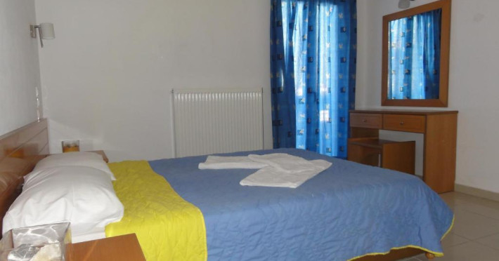 În camere există baie cu cadă sau duș ce are în dotare foehn și articole de toaletă gratuite. Camerele confortabile de la Eleni Palace Hotel au pardoseală de gresie/ marmură, aer condiționat, Tv cu canale prin satelit și seif. Camerele au balcon cu masă și scaune unde pot fi petrecute momente de relaxare. Oaspeții au acces gratuit la serviciul Wi-fi în camere. Fiecare unitate de cazare include o chicinetă utilată cu frigider și ustensile de bucătărie. De asemenea, este disponibilă o zonă de luat masa. Proprietatea oferă camere pentru familie cu o suprafață mai mare și un număr mai mare de paturi față de cele standard. Se pot rezerva de asemenea camere pentru nefumători.