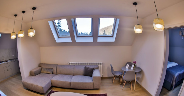 Expecto Apartments is a sustainable condo hotel in Sinaia, 1.3 miles from George Enescu Memorial House. This property encourages guests to embrace nature with its eco-friendly arrangements. The air-conditioned accommodations are a 6-minute walk from Stirbey Castle. Theres free private parking, and the property offers a paid airport shuttle service. At the condo hotel, all units include a wardrobe. The rooms have a coffee machine, a flat-screen TV, a safety deposit box, and free Wifi, while some rooms also offer a terrace and some have mountain views. At the condo hotel, the units have a private bathroom with slippers and a hair dryer. Guests may eat at the on-site family-friendly restaurant, which is open for dinner, lunch, brunch, and cocktails. BraÅov Adventure Park is 24 miles from the condo hotel, while Dino Parc is 25 miles from the property. The nearest airport is Bucharest Henri CoandÄ International Airport, 67 miles from Expecto Apartments.WiFi is available in all areas and is free of charge. Free private parking is available on site (reservation is not needed). Pets are not allowed. Children of all ages are allowed. Children 3 and under stay for free when using an available crib. Children 6 and under stay for free when using an existing bed. Children from 7 to 12 years old stay for 100Â lei per person, per night when using an existing bed. Children from 13 to 17 years old stay for 150Â lei per person, per night when using an existing bed. You havent added any extra beds. Any type of extra bed or crib is upon request and needs to be confirmed by management. Additional fees are not calculated automatically in the total cost and will have to be paid for separately during your stay.Checkin Time: 15:00Checkin End Time: 23:00Checkout From: 08:00Checkout End Time: 12:00Hotel important information: This property does not accommodate bachelor(ette) or similar parties. Please inform Expecto Apartments of your expected arrival time in advance. You can use the Special Requests box when booking, or contact the property directly using the contact details in your confirmation. Guests are required to show a photo ID and credit card upon check-in. Please note that all Special Requests are subject to availability and additional charges may apply. In accordance with government guidelines to minimize transmission of the coronavirus (COVID-19), this property currently isnt accepting guests from certain countries on dates where such guidelines exist. Wood Restaurant seats up to 100 people, and the terrace closed with a pergola has 60 seats. Wood Restaurant offers international cuisine specialties and a special ambiance. You can enjoy Romanian and international delicacies, and the bar offers fine drinks and cocktails.Datorita dinamicitatii domeniului disponibilitatea ofertelor se modifica de la un moment la altul. De aceea ofertele sunt valabile in limita locurilor disponibile. Agentia nu este responsabila pentru eventualele neconcordante care pot aparea intre informatiile privind tarifele si alte detalii din site si informatiile primite in agentie. In aceste cazuri vor avea prioritate, intotdeauna, informatiile primite in agentie.