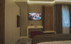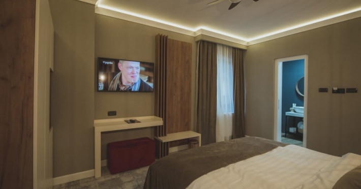 Camera dubla superioara este dotata cu pat matrimonial, balcon,TV LCD, pardoseala cu mocheta, baie proprie cu dus, uscator de par, halat, papuci si consumabile, seif si telefon. Accesul in camera se face pe baza de card.