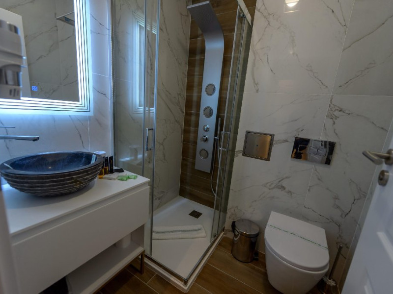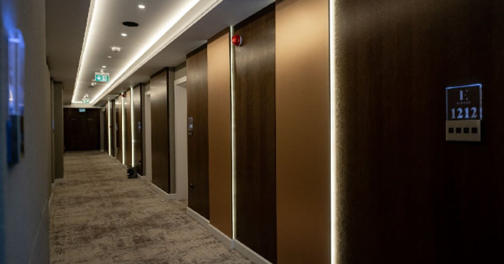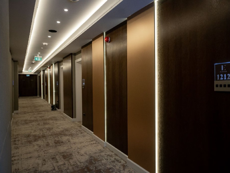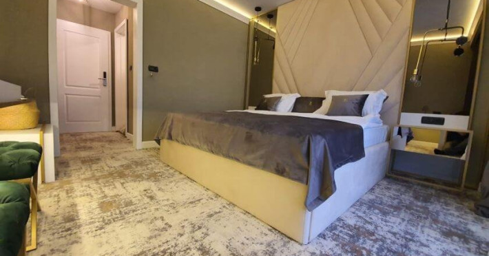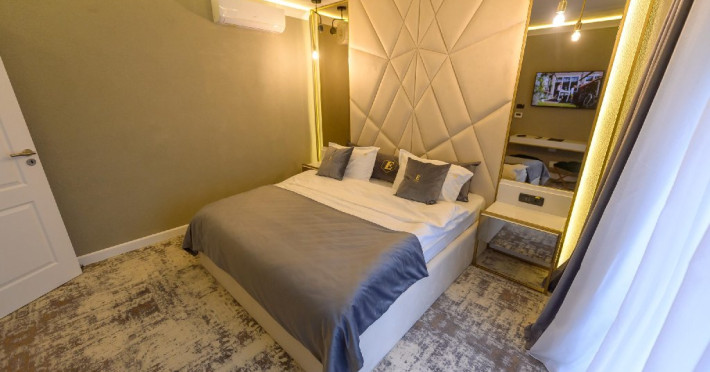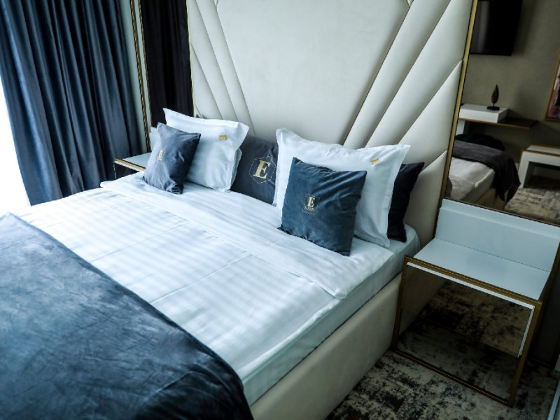 Apartament Superior: aer conditionat,acces card ,TV UHD Smart , uscator de par ,telefon,seif , halat,papuci,fierbator de apa,consumabile,minibar, dormitor cu pat matrimonial + living cu canapea extensibila,balcon.
