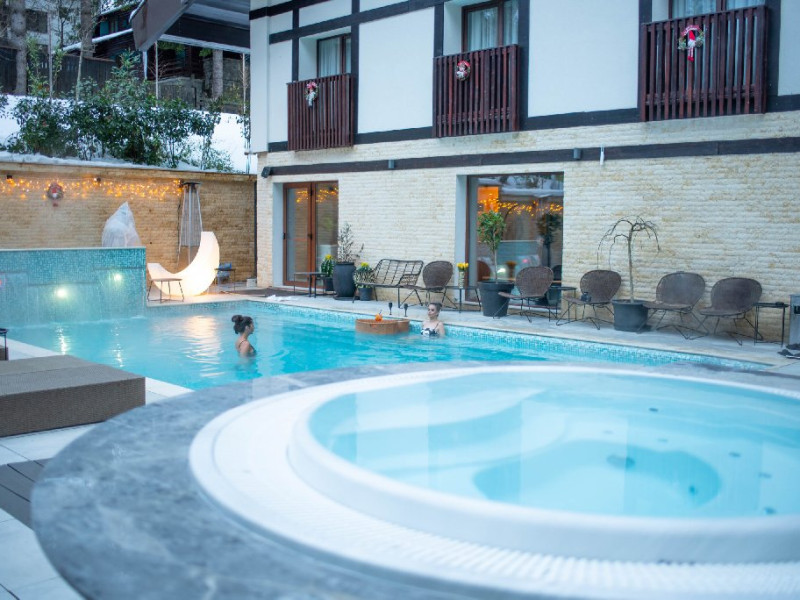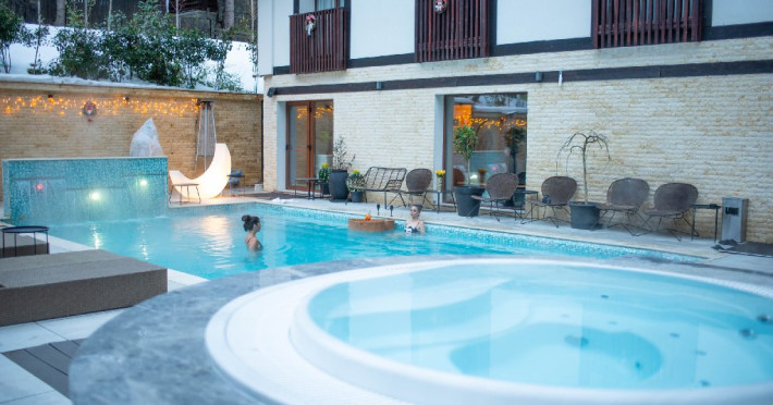 Hotelul pune la dispozitia oaspetilor 50 de camere duble si apartamente, un restaurant international, un bar , o sala de conferinte, lift, Centru SPA cu piscina exterioara incalzita deschisa tot timpul anului,sauna, salina, parcare, statie de incarcare electrica - disponibila prin aplicatia Evconnect .