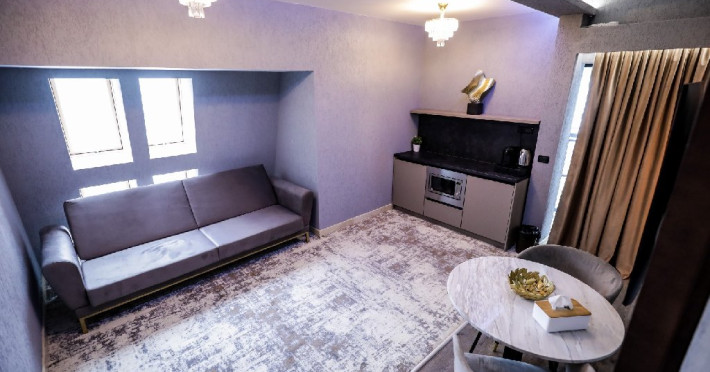 Royal Junior Suite - open space, pat matrimonial, canapea extensibila, semineu, balcon sau terasa. 3 adulti sau 2 adulti si 2 copii.