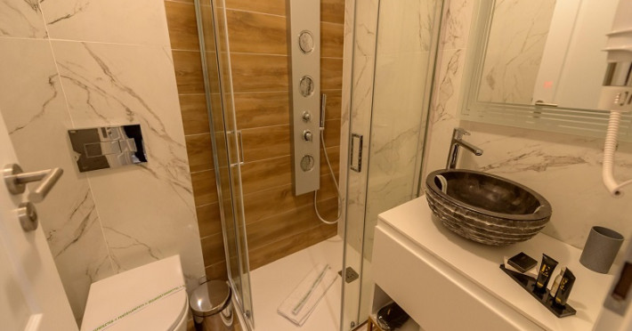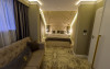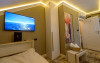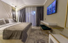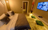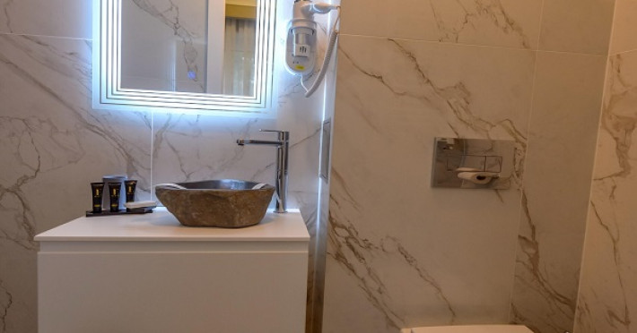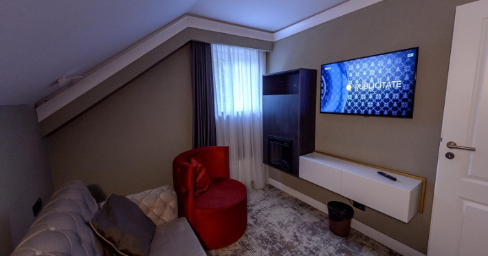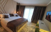Camera dubla este dotata cu pat matrimonial, aer conditionat, minibar, TV UHD Smart, telefon, seif, fierbator de apa, balcon, baie proprie cu uscator de par, halate, papuci si consumabile. Accesul se face pe baza de card.