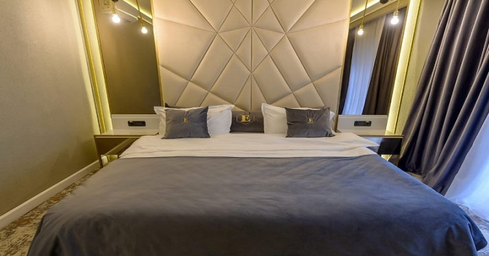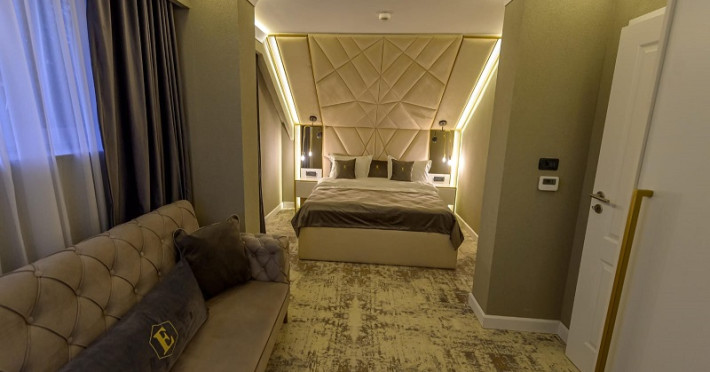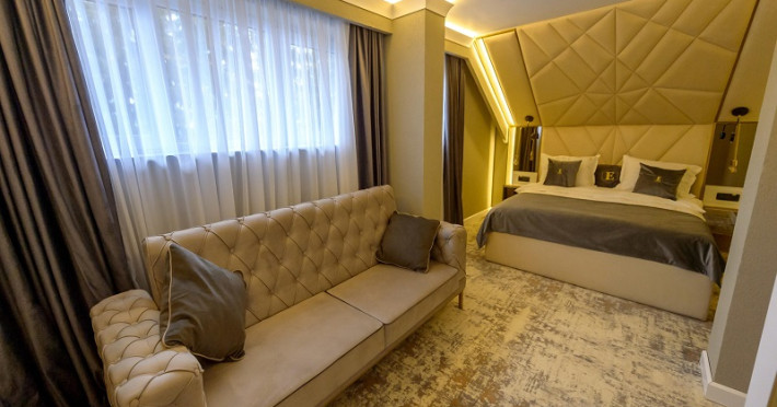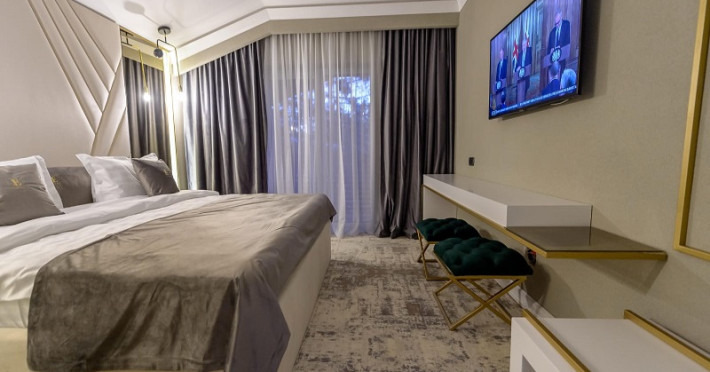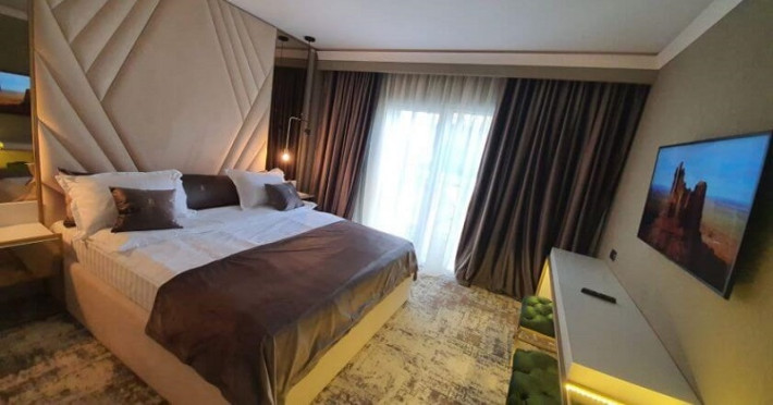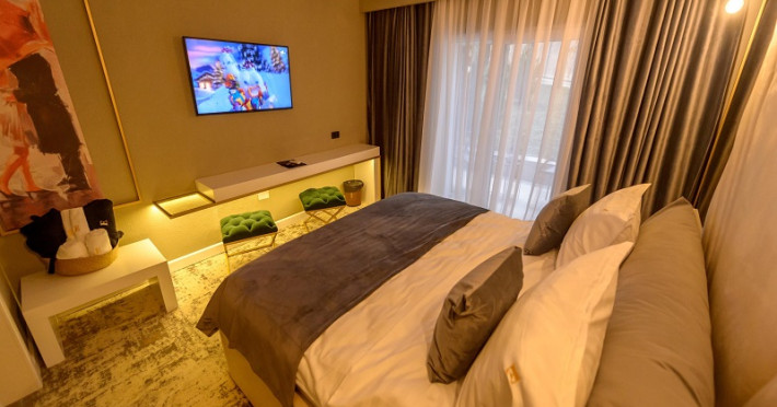 Apartamentele Deluxe sunt dotate cu dormitor cu pat matrimonial si living cu canapea extensibila, minibar, aer conditionat, TV UHD Smart, telefon, seif, fierbator de apa, baie cu uscator de par, halat, papuci si consumabile. In plus fata de apartamentul standard, apartamentul deluxe are si balcon. Accesul se face pe baza de cartela.