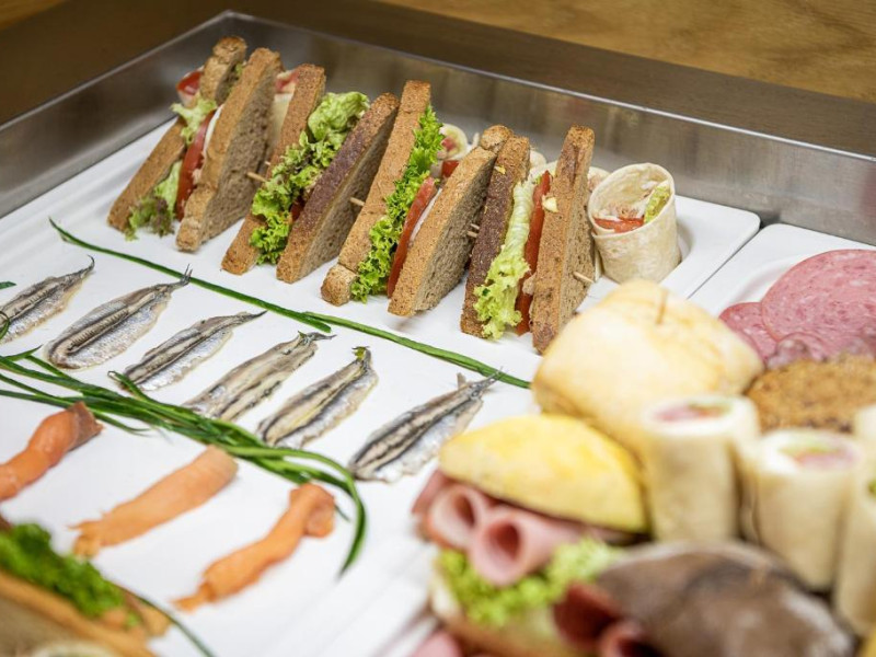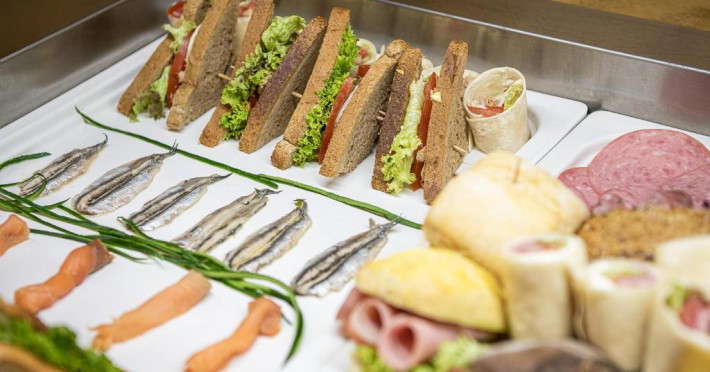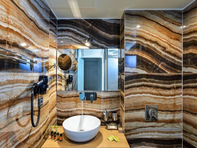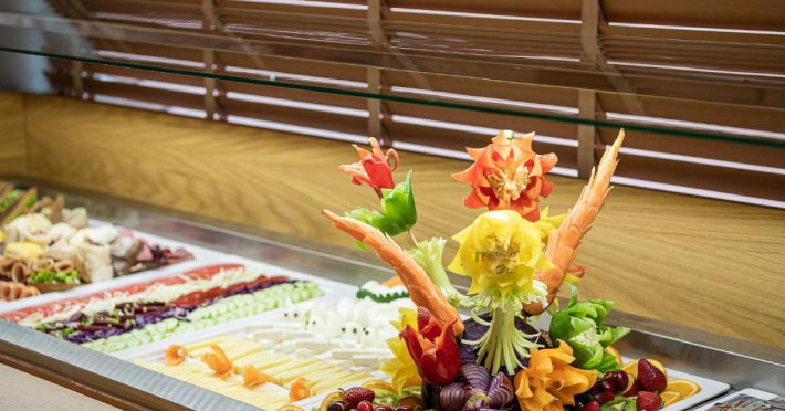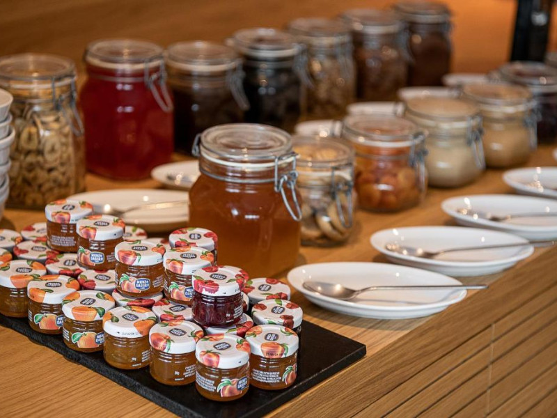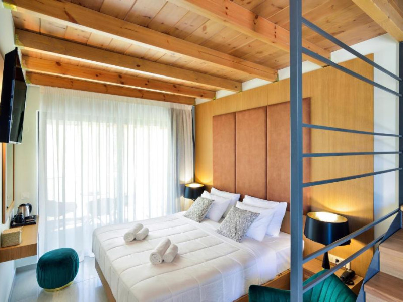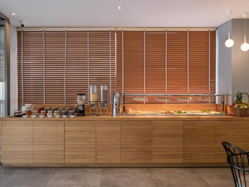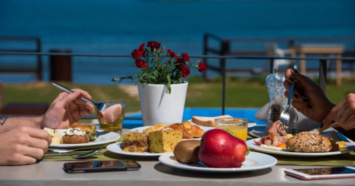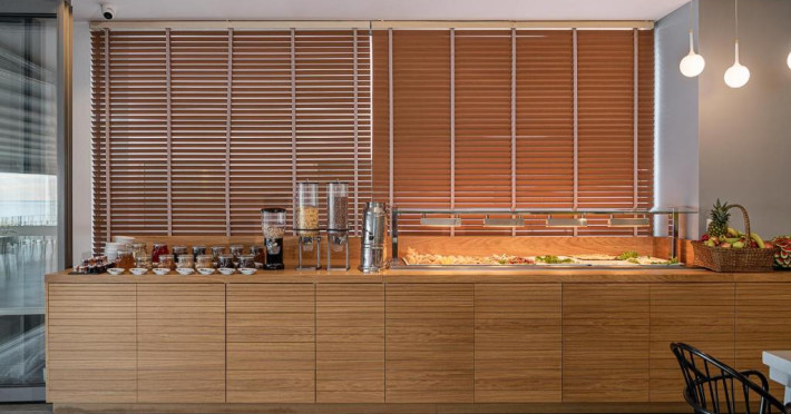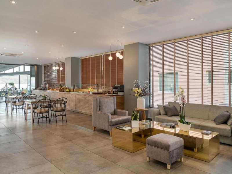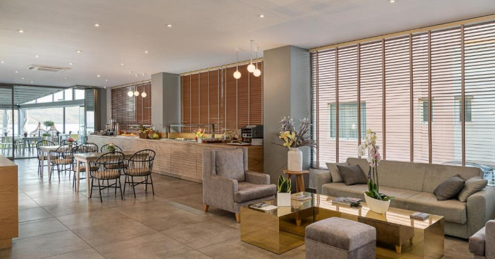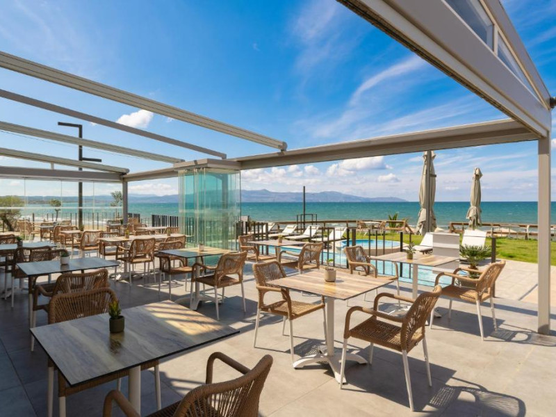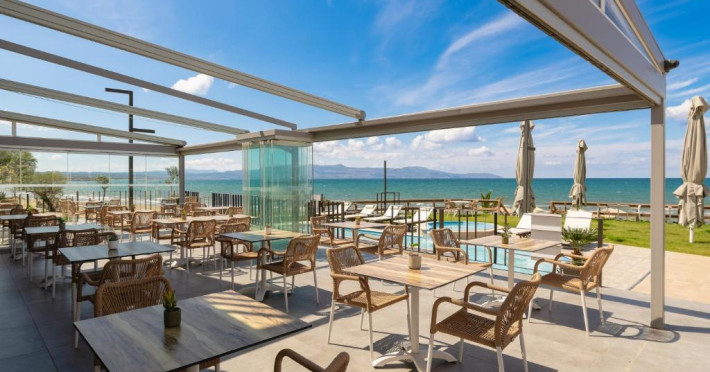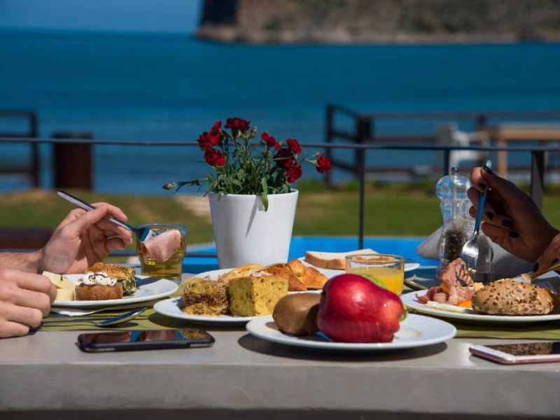 Restaurantul hotelului oferă preparate din bucătăria grecească, internațională și mediteraneană, iar snack-barul oferă o varietate de băuturi și gustări.