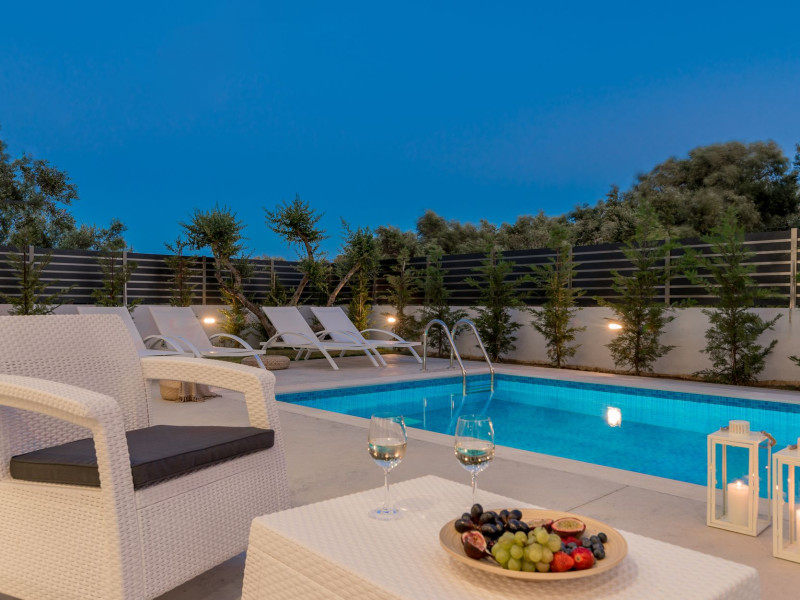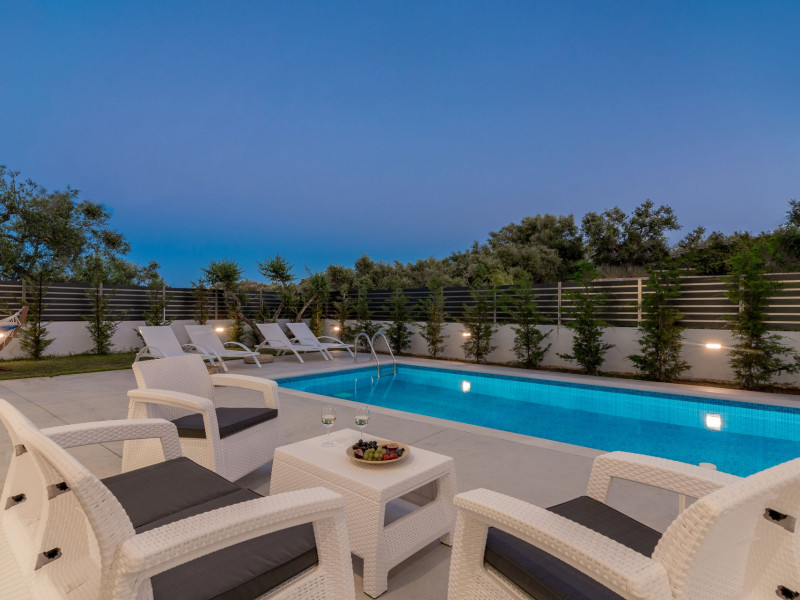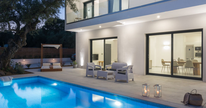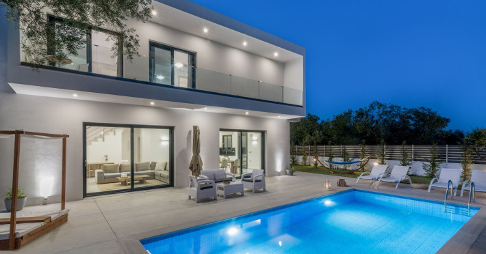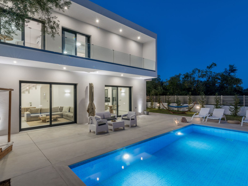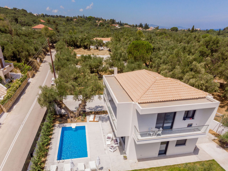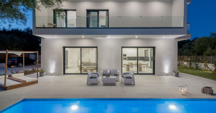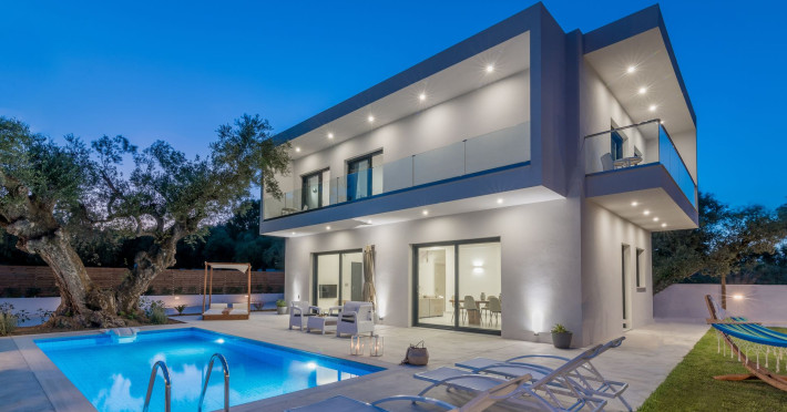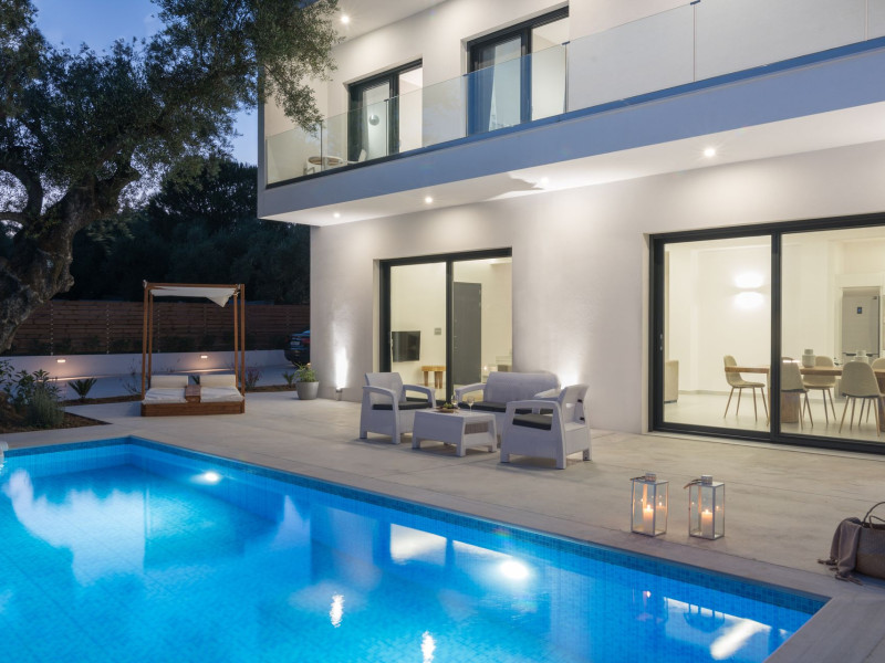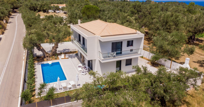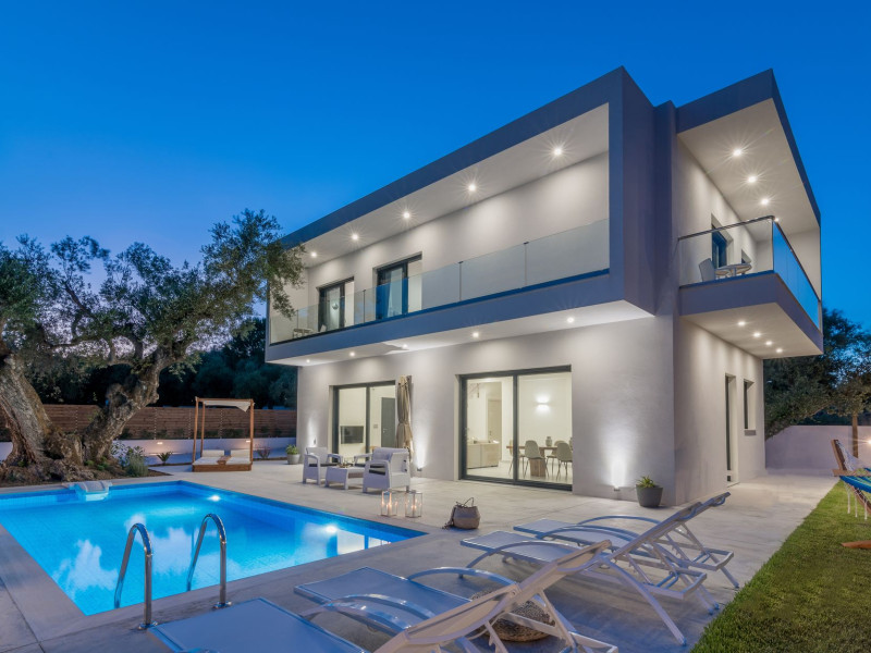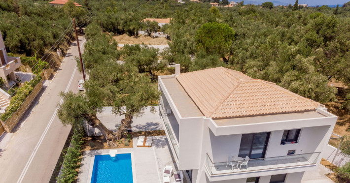 Elia Villa is a newly built, two-story vacation home in the vicinity of Zante Town, an ideal location for relaxing holidays, be it for couples, groups of friends or families, close to every amenity an island capital can offer. The villa is modernly decorated, with a distinct minimalist feel, and it offers a multitude of facilities. The combination of the aforementioned characteristics with the spectacular swimming pool and the quiet location which is surrounded by olive trees, makes Elia Villa the best choice for memorable Zakynthos holidays.Datorita dinamicitatii domeniului disponibilitatea ofertelor se modifica de la un moment la altul. De aceea ofertele sunt valabile in limita locurilor disponibile. Agentia nu este responsabila pentru eventualele neconcordante care pot aparea intre informatiile privind tarifele si alte detalii din site si informatiile primite in agentie. In aceste cazuri vor avea prioritate, intotdeauna, informatiile primite in agentie.