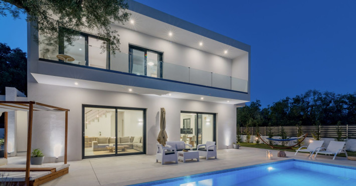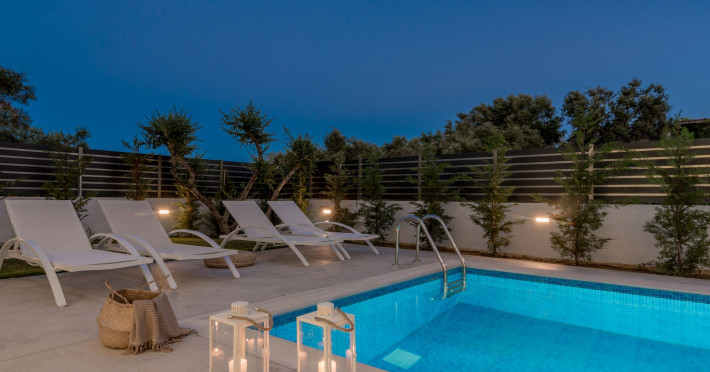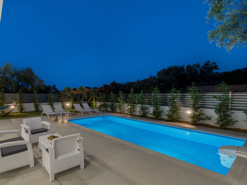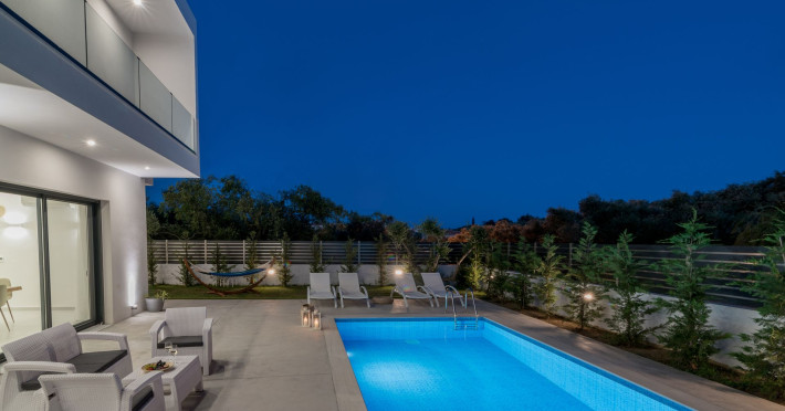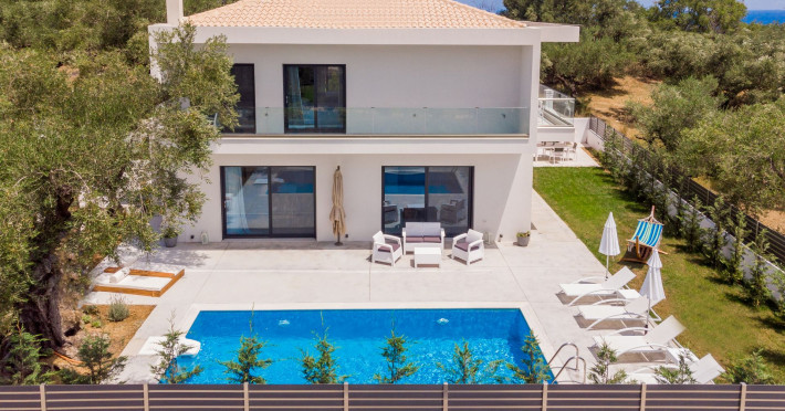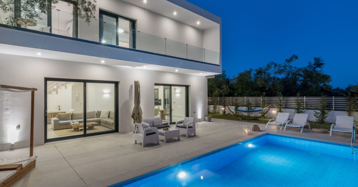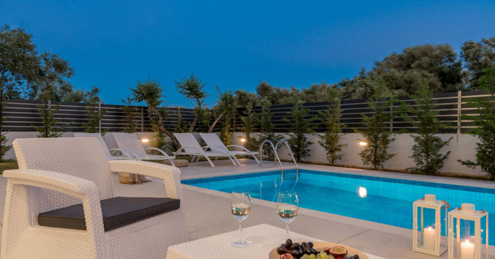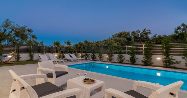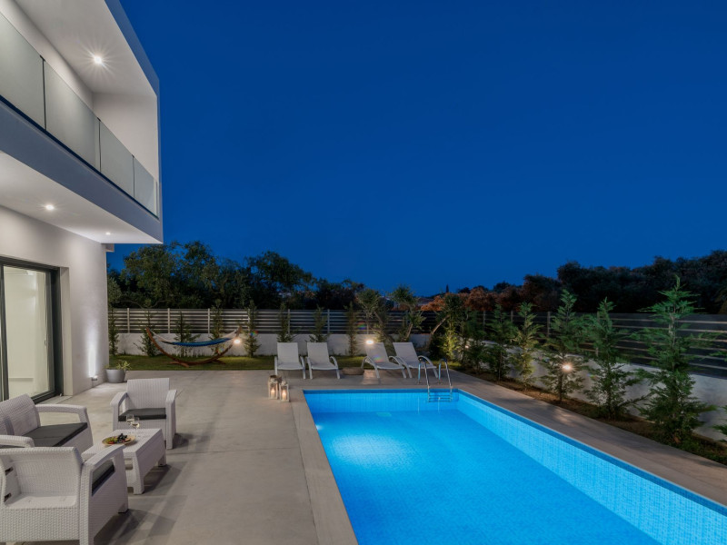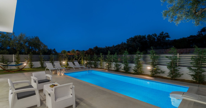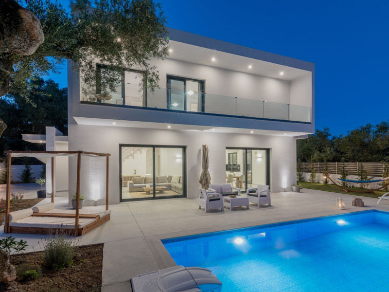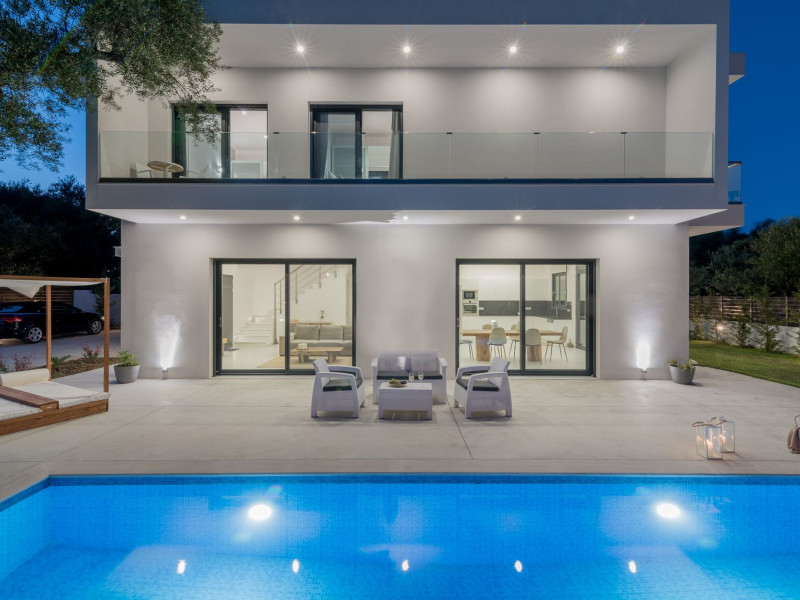 Elia Villa is a newly built, two-story vacation home in the vicinity of Zante Town, an ideal location for relaxing holidays, be it for couples, groups of friends or families, close to every amenity an island capital can offer. The villa is modernly decorated, with a distinct minimalist feel, and it offers a multitude of facilities. The combination of the aforementioned characteristics with the spectacular swimming pool and the quiet location which is surrounded by olive trees, makes Elia Villa the best choice for memorable Zakynthos holidays.Datorita dinamicitatii domeniului disponibilitatea ofertelor se modifica de la un moment la altul. De aceea ofertele sunt valabile in limita locurilor disponibile. Agentia nu este responsabila pentru eventualele neconcordante care pot aparea intre informatiile privind tarifele si alte detalii din site si informatiile primite in agentie. In aceste cazuri vor avea prioritate, intotdeauna, informatiile primite in agentie.