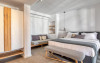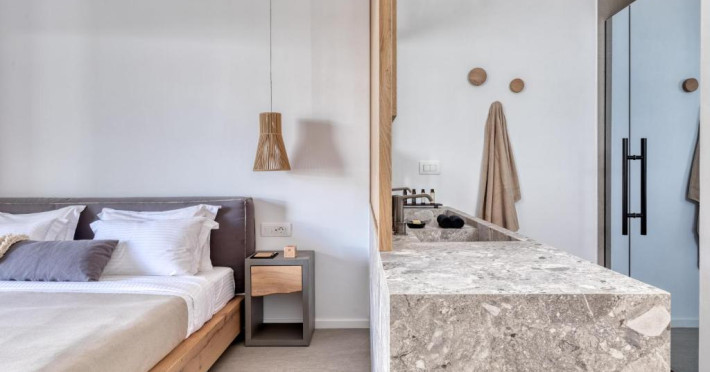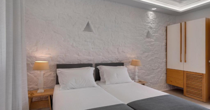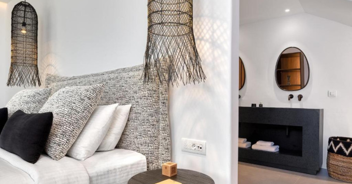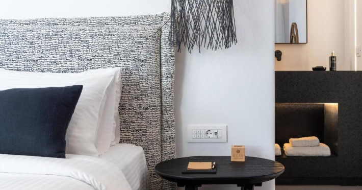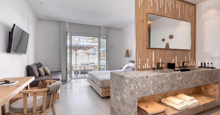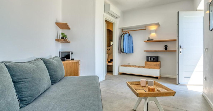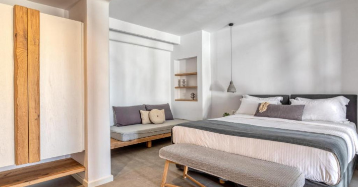 Camerele si suitele de la Elia au podea de lemn, tavan cu grinzi si vedere la Marea Egee sau la grădină. Fiecare unitate de cazare are aer condiționat, minibar, seif și TV cu ecran plat. De asemenea, unele unități au zonă de relaxare si o chicinetă bine utilată. Baia privată are uscător de păr. Fiecare cameră include prosoape și sezlonguri gratuite.