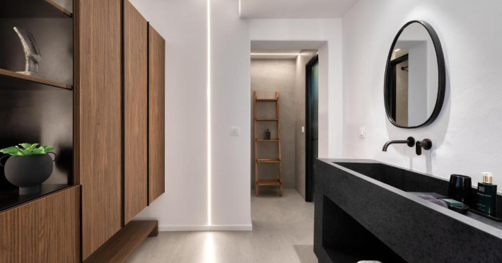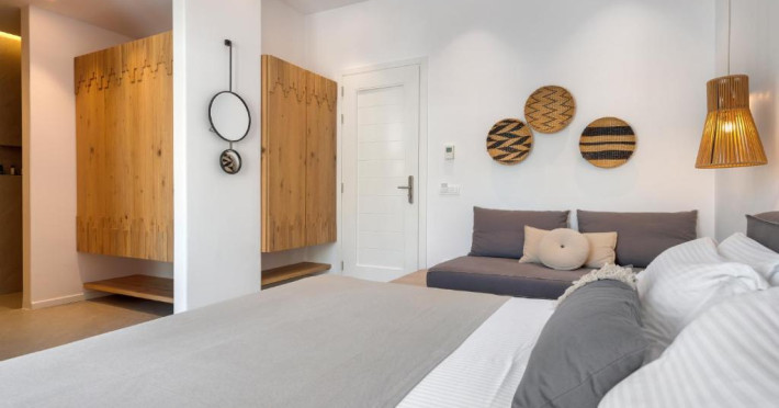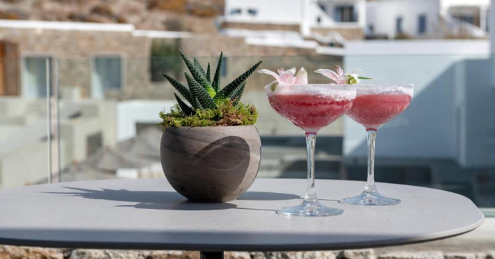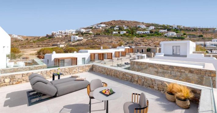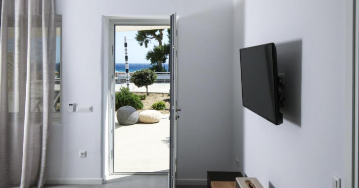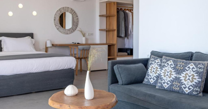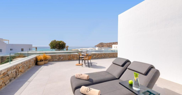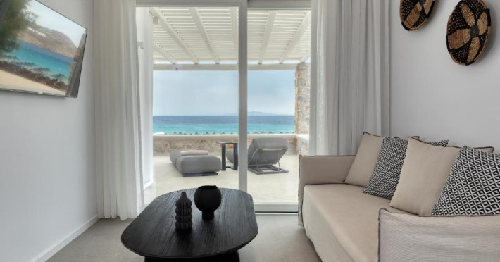 De asemenea, se asigură sezlonguri si prosoape de plajă. Elia Mykonos Resort se află la 10 km de orașul cosmopolit Mykonos și la 9 km de Aeroportul Național Mykonos. Plaja din Psarrou, cu renumitele sale baruri si cluburi, este la 13 km. La 3 km se găsește o farmacie, un supermarket si un bancomat. Oaspeții beneficiază de parcare privată gratuită.