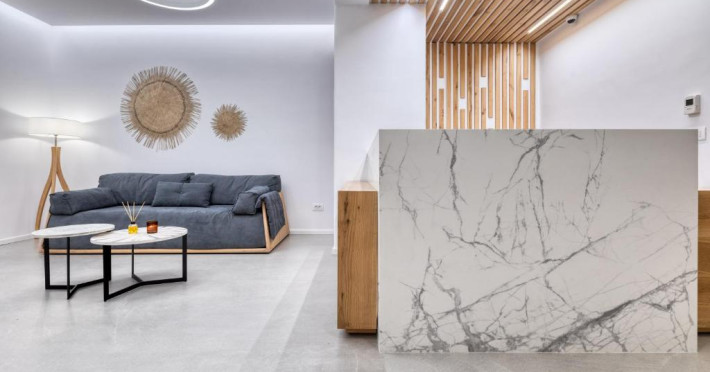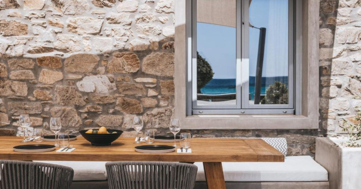 Oaspetii pot savura băuturi, cafea si preparate mediteraneene la barul-restaurant cu vedere la mare.