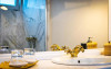 In livingul deschis ce se contopeste cu gradina te poti afunda in canapele confortabile savurand un espresso. Grija pentru detalii iti bucura ochiul la fiecare bataie a pleoapelor.