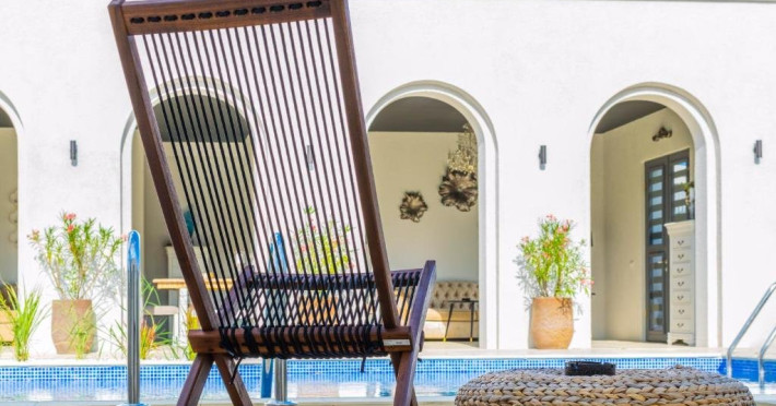 Patru camere cu interioare elegante si cu scara proprie catre piscina te astepta sa le savurezi precum si trei camere duble aflate la etaj. Piscina devine vie dupa lasarea serii, cu scantei care sclipesc la stelele de deasupra invitand la prima noapte a multor placeri vamaiote. Cea de-a cincea camera este o suita confortabila cu o mica gradina proprie inconjurata de verdeata.