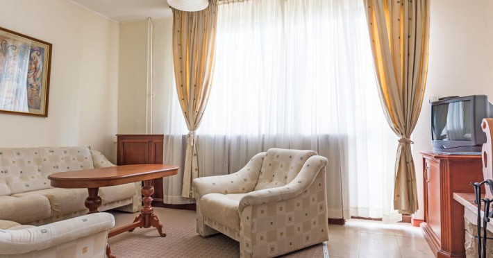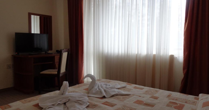 Camerele luminoase de la Elina sunt dotate cu mochetă, aer condiționat, Tv și seif. Unele camere au balcon cu vedere la munte. În camere există baie cu cadă sau duș. Oaspeții au acces gratuit la serviciul Wi-fi în camere. Proprietatea oferă camere pentru familie cu o suprafață mai mare și un număr mai mare de paturi față de cele standard.