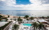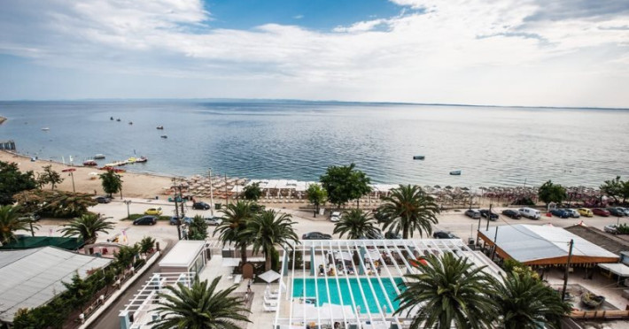 Plaja privata utilata cu sezlonguri si umbrele, centru SPA, piscina in aer liber, restaurant pe acoperis.
