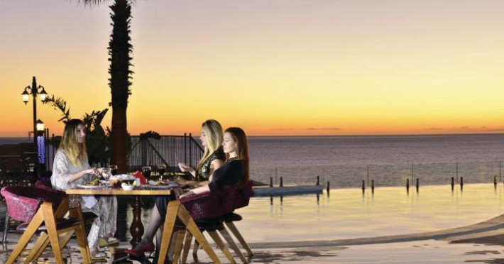 Există diverse locuri unde se poate lua masa: un restaurant, o cafenea și un bar. Băuturile răcoritoare de la barul de pe plajă creează momente minunate. Locul de cazare oferă pentru masă pachete de servicii cu mic dejun inclus și demipensiune. La mic dejun și o cină se organizează un bufet divers. Contra cost există și băuturi nealcoolice și băuturi alcoolice.