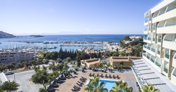 Acest hotel este amplasat la malul mării, pe coasta Mării Egee, la doar 250 de metri de plajă. Hotelul oferă piscină în aer liber şi terasă cu vedere panoramică la mare şi la Portul de Agrement Kusadasi.Centrul oraşului Kusadasi este la doar 1 km de hotelul Marina, cu numeroase restaurante, baruri şi magazine. Aeroportul Adnan Menderes din Izmir se află la 70 de kilometri.Descriere