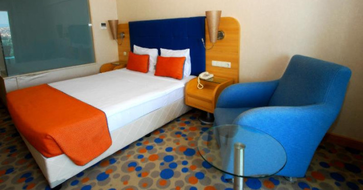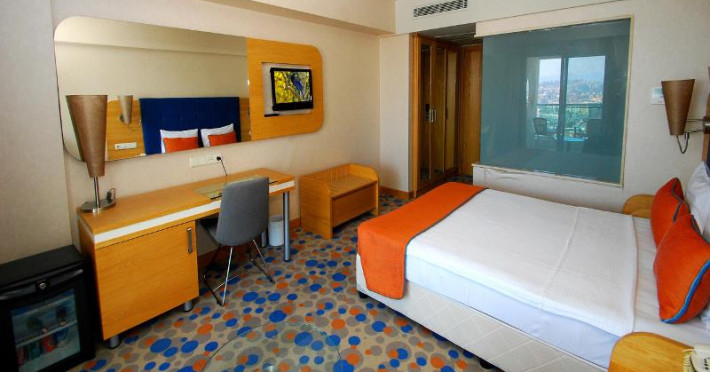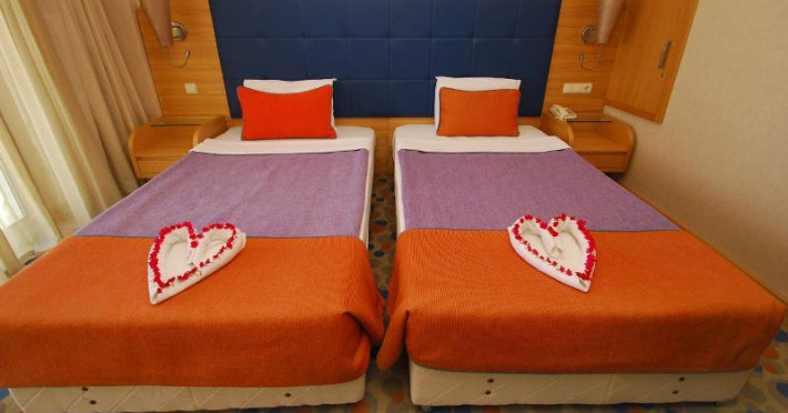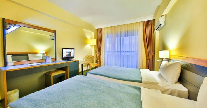 Hotelul are mai multe tipuri de camere, inclusiv apartamente, toate dotate cu aer conditionat, TV LCD cu canale prin satelit, minibar, baie cu dus sau cada, acces WIFI gratuit, balcoane cu vedere la gradina sau la mare.
