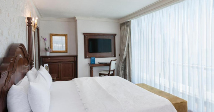 Camerele de la Hotelul Elite World Istanbul au o aromă neoclasică. Băile luxoase, cu finisaje din marmură, mocheta elegantă și televizoarele cu ecran plat montate pe perete sunt standard. Televizorul interactiv este disponibil in fiecare cameră.