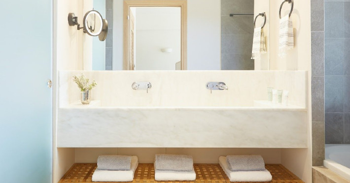 Cele 4 bai sunt dotate cu dusuri cu hidromasaj, difuzoare, uscatoare de par, gama completa de articole de toaleta, prosoape si halate de baie din bumbac, papuci de casa si prosoape de plaja.