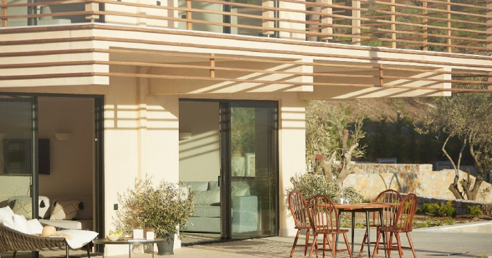 Junior Suite Hot Tub: camerele sunt situate la etajul superior si pot acomoda 2 adulti si 1 copil. Este alegerea perfecta pentru 2 adulti si 1 copil care cauta o cazare unica si luxoasa, amplasata in natura. Cada cu hidromasaj si terasa mare dotata cu 2 sezlonguri, cu vedere catre Marea Egee, sporesc sentimentul de relaxare.