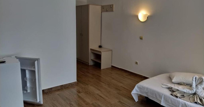 Apartamentul fara terasa se compune din dormitor cu pat matrimonial (180x200) si un living cu canapea extensibila (117x190). Este situat la etajul 1, camerele sunt separate cu usa, iar TV exista in ambele camere, in timp ce aer conditionat e doar in living. Suprafata 21 mp.